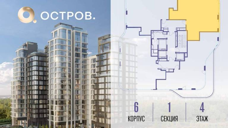Продаётся 4-комн. квартира от застройщика: общая площадь 160.50 м, жилая 61.80 м, кухня 33.30 м, 14-й этаж, жилой квартал «Остров 12», корпус 6 (секция 1) .