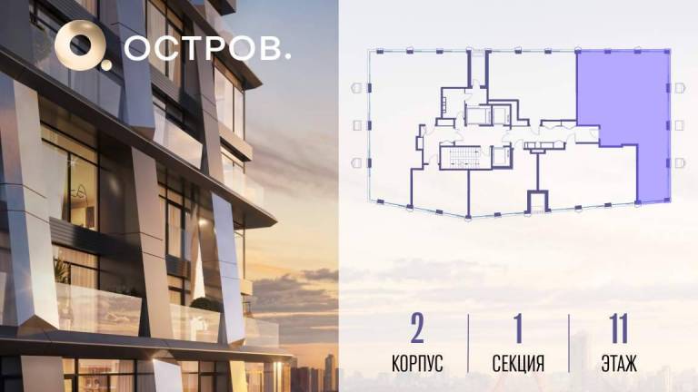 Продаётся 4-комн. квартира от застройщика: общая площадь 114.20 м, жилая 58.90 м, кухня 28.10 м, 2-й этаж, жилой квартал «Остров 12», корпус 2 (секция 1) .