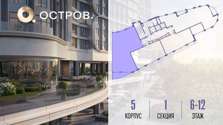 Продаётся 4-комн. квартира от застройщика: общая площадь 177.00 м, жилая 53.80 м, кухня 60.50 м, 12-й этаж, жилой квартал «Остров 7», корпус 5 (секция 1) .
