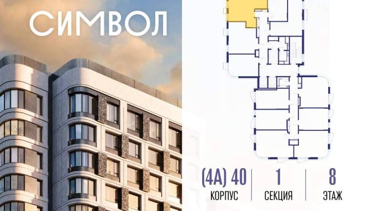 Продается 1-комнатная квартира от застройщика: общая площадь 40.90 м, жилая 14.70 м, кухня 16.20 м, 4-й этаж, жилой квартал «Гордость», корпус 40 (секция 1) .