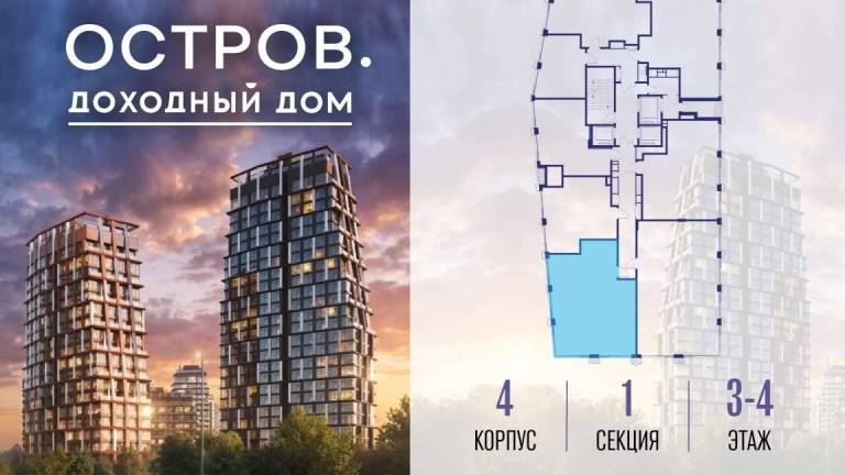 Продаётся 4-комн. квартира от застройщика: общая площадь 114.20 м, жилая 55.90 м, кухня 23.70 м, 2-й этаж, жилой квартал «Остров 14», корпус 4 (секция 1) .
