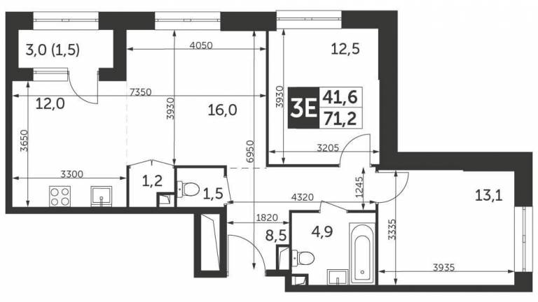 Фильтры1Продается 3-комн. квартира, площадью 71.2 кв.м. Жилая площадь 41.6 м2, кухня 12 кв. м, ремонта нет, окна выходят на улицу. Квартира располагается на 20 этаже...
