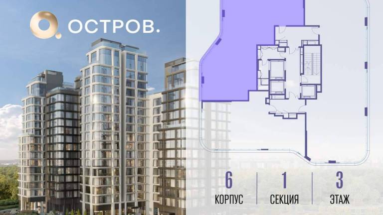 Продаётся 3-комн. квартира от застройщика: общая площадь 133.30 м, жилая 47.90 м, кухня 33.30 м, 8-й этаж, жилой квартал «Остров 12», корпус 6 (секция 1) .