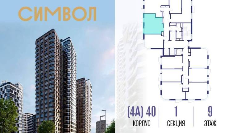 Продается 1-комнатная квартира от застройщика: общая площадь 40.90 м, жилая 14.70 м, кухня 16.20 м, 4-й этаж, жилой квартал «Гордость», корпус 40 (секция 1) .