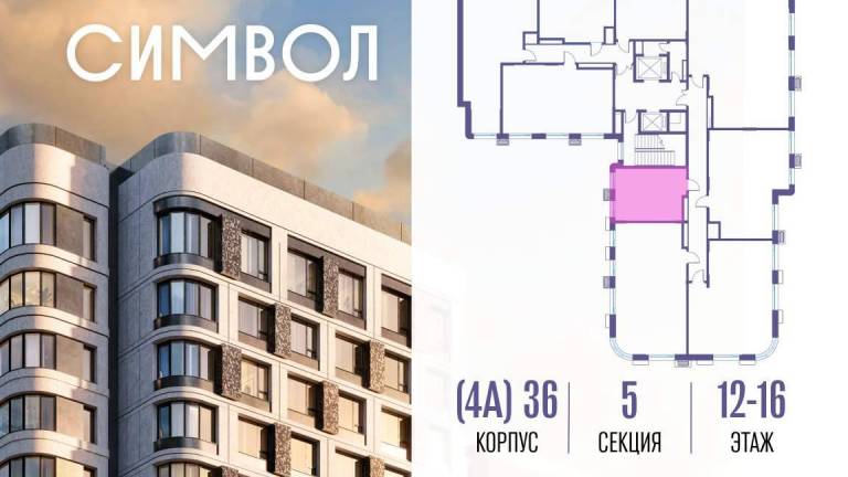 Продается 1-комнатная квартира от застройщика: общая площадь 41.90 м, жилая 15.10 м, кухня 17.00 м, 12-й этаж, жилой квартал «Гордость», корпус 36 (секция 1) .