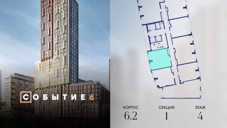 Продаётся 1-комнатная квартира от застройщика: общая площадь 38.80 м, жилая 14.90 м, кухня 16.00 м, 30-й этаж, жилой квартал «Событие-6», корпус 2 (секция 5...