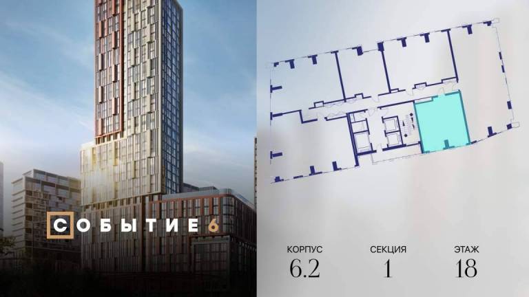 Продаётся 1-комнатная квартира от застройщика: общая площадь 38.30 м, жилая 14.60 м, кухня 15.70 м, 21-й этаж, жилой квартал «Событие-6», корпус 2 (секция 5...