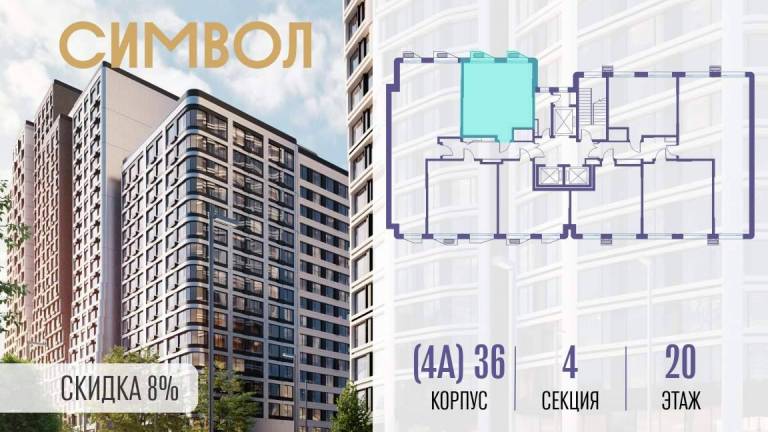 Продаётся 1-комнатная квартира от застройщика: общая площадь 56.40 м, жилая 15.70 м, кухня 29.20 м, 20-й этаж, жилой квартал «Событие-6», корпус 2 (секция 5...