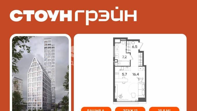 Старт продаж квартир в ЖК бизнес+ класса от девелопера STONE В продаже функциональная и светлая студия с ванной комнатой с окном для реализации любого...