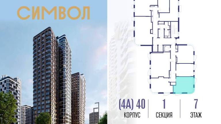 Продаётся 1-комнатная квартира от застройщика: общая площадь 38.80 м, жилая 14.90 м, кухня 16.00 м, 34-й этаж, жилой квартал «Событие-6», корпус 2 (секция 5...