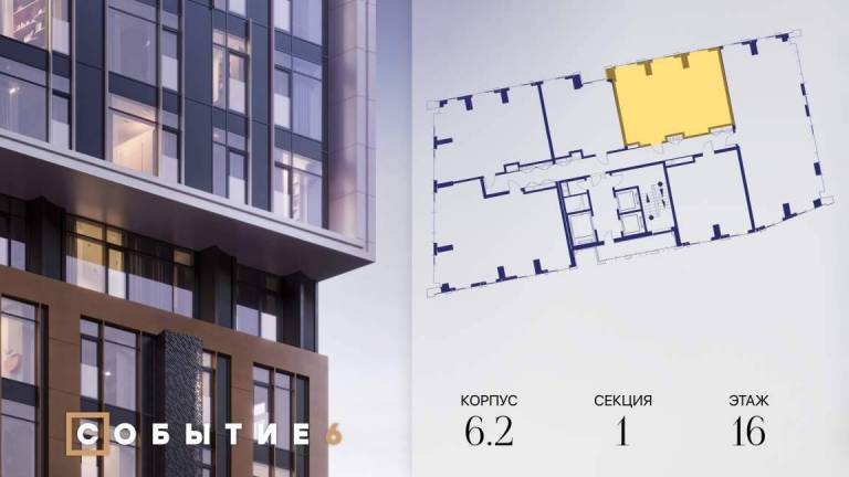 Продаётся 2-комнатная квартира от застройщика: общая площадь 62.10 м, жилая 33.00 м, кухня 17.80 м, 37-й этаж, жилой квартал «Событие-6», корпус 2 (секция 5...