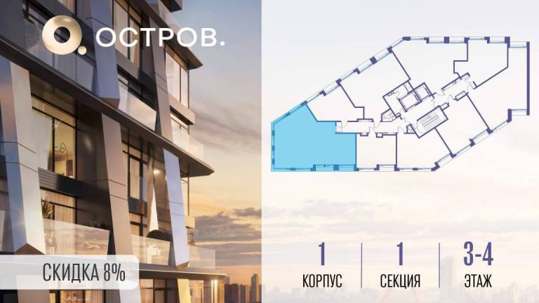 Продаётся 3-комн. квартира от застройщика: общая площадь 128.20 м, жилая 36.20 м, кухня 35.80 м, 16-й этаж, жилой квартал «Остров 7», корпус 2 (секция 2) .