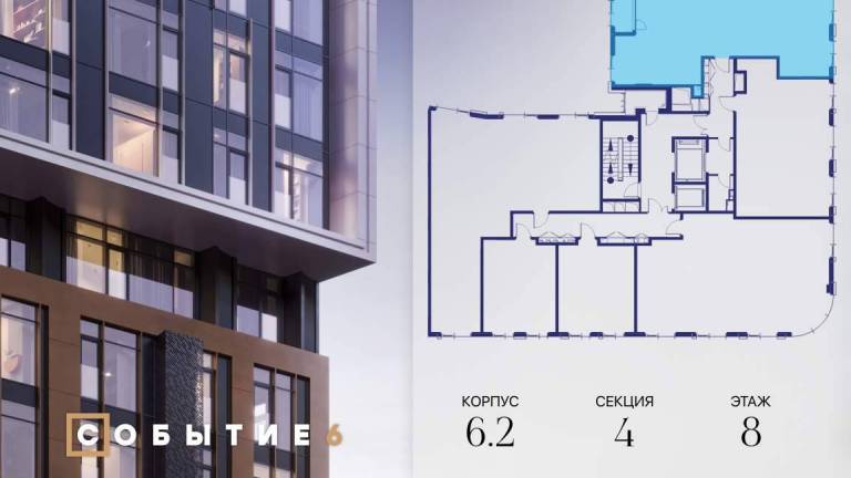 Фильтры2Продаётся 3-комнатная квартира от застройщика: общая площадь 79.40 м, жилая 39.80 м, кухня 20.60 м, 8-й этаж, жилой квартал «Событие-6», корпус 2 (секция 4...