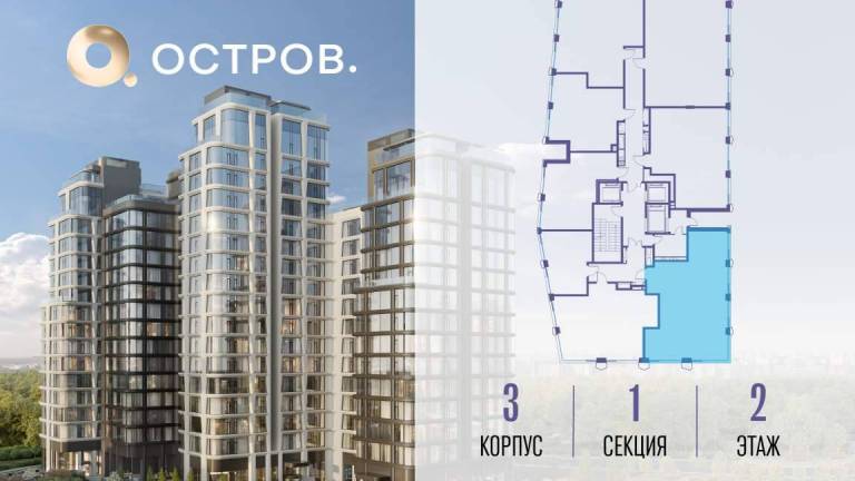 Продаётся 3-комн. квартира от застройщика: общая площадь 128.20 м, жилая 36.20 м, кухня 35.80 м, 16-й этаж, жилой квартал «Остров 7», корпус 2 (секция 2) .