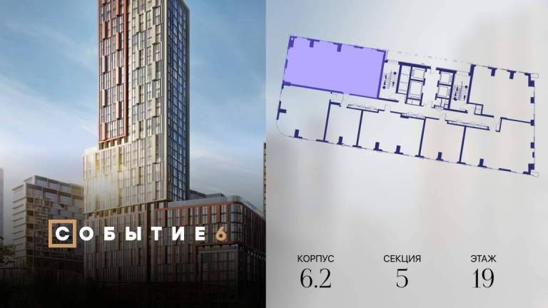 Фильтры2Продаётся 4-комнатная квартира от застройщика: общая площадь 121.90 м, жилая 56.00 м, кухня 23.40 м, 19-й этаж, жилой квартал «Событие-6», корпус 2 (секция 5...