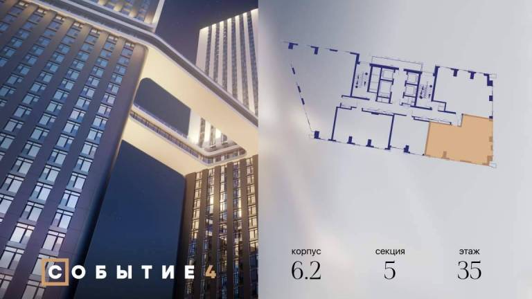 Фильтры1Продаётся 3-комнатная квартира от застройщика: общая площадь 81.70 м, жилая 46.00 м, кухня 17.40 м, 35-й этаж, жилой квартал «Событие-6», корпус 2 (секция 5...