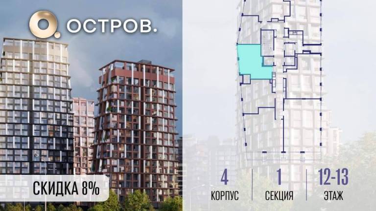 Продаётся 1-комн. квартира от застройщика: общая площадь 42.60 м, жилая 0.00 м, кухня 19.70 м, 12-й этаж, жилой квартал «Остров 14», корпус 4 (секция 1) . Срок...