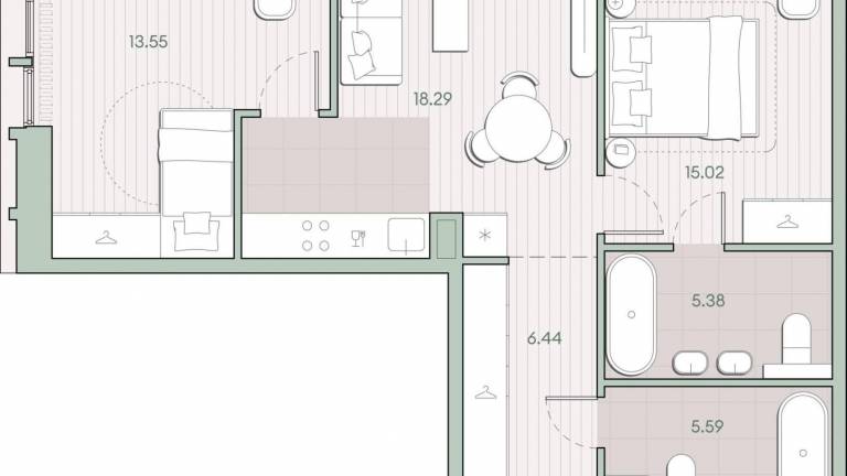 Продается просторная квартира площадью 152.50 м2 в жилом комплексе РЕКА. Квартира находится во 2 секции корпуса 3 (будет введен в эксплуатацию в 4 кв. 2026) .