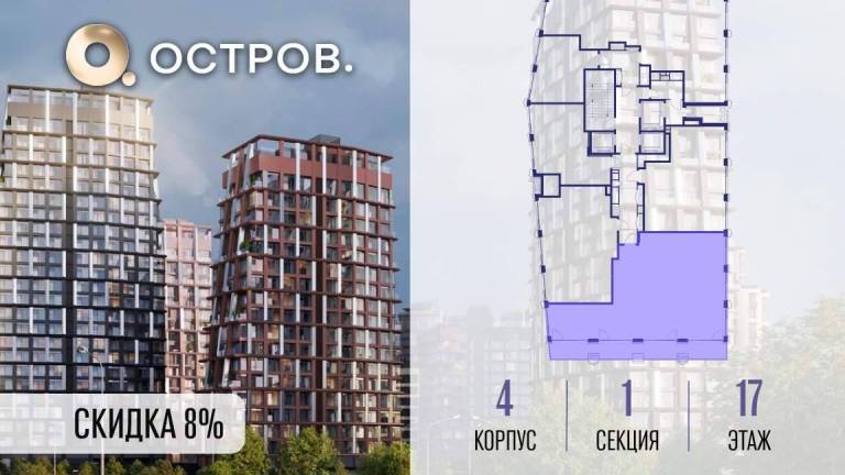 Фильтры1Продаётся 4-комн. квартира от застройщика: общая площадь 127.50 м, жилая 59.80 м, кухня 31.90 м, 17-й этаж, жилой квартал «Остров 14», корпус 4 (секция 1) .
