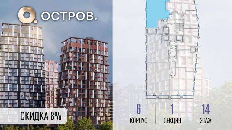 Продаётся 4-комн. квартира от застройщика: общая площадь 112.70 м, жилая 55.90 м, кухня 23.70 м, 8-й этаж, жилой квартал «Остров 14», корпус 6 (секция 1) .