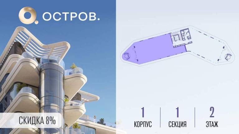 Продаётся 1-комн. квартира от застройщика: общая площадь 50.50 м, жилая 19.90 м, кухня 21.30 м, 21-й этаж, жилой квартал «Остров 7», корпус 7 (секция 1) . Срок...