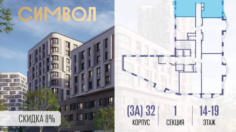 Продаётся 2-комнатная квартира от застройщика: общая площадь 61.90 м, жилая 33.00 м, кухня 17.80 м, 35-й этаж, жилой квартал «Событие-6», корпус 2 (секция 5...