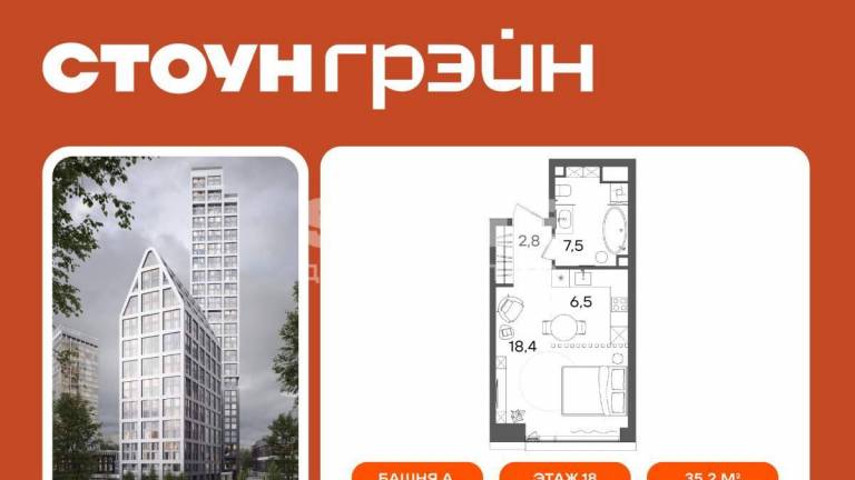 Старт продаж квартир в ЖК бизнес+ класса от девелопера STONE В продаже функциональная и светлая односпальная квартира с кухней-гостиной и одной спальней для...
