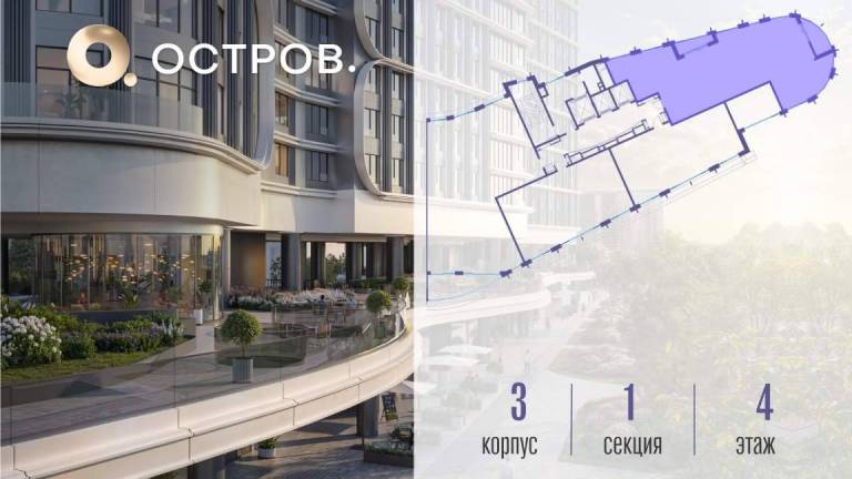 Продаётся 4-комн. квартира от застройщика: общая площадь 134.90 м, жилая 50.10 м, кухня 41.70 м, 14-й этаж, жилой квартал «Остров 7», корпус 3 (секция 2) .