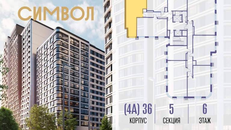 Продается 1-комнатная квартира от застройщика: общая площадь 41.70 м, жилая 14.60 м, кухня 16.40 м, 6-й этаж, жилой квартал «Гордость», корпус 36 (секция 4) .