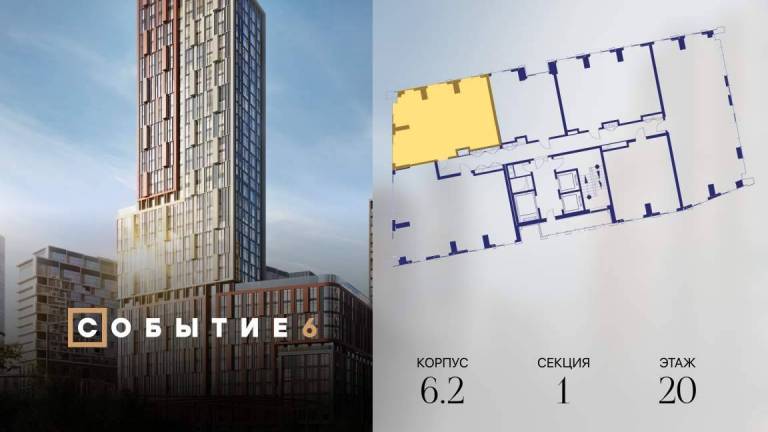 Фильтры2Продаётся 2-комнатная квартира от застройщика: общая площадь 74.60 м, жилая 28.40 м, кухня 26.30 м, 20-й этаж, жилой квартал «Событие-6», корпус 2 (секция 1...