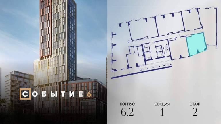 Продаётся 2-комнатная квартира от застройщика: общая площадь 61.40 м, жилая 31.60 м, кухня 16.90 м, 8-й этаж, жилой квартал «Событие-6», корпус 2 (секция 3...