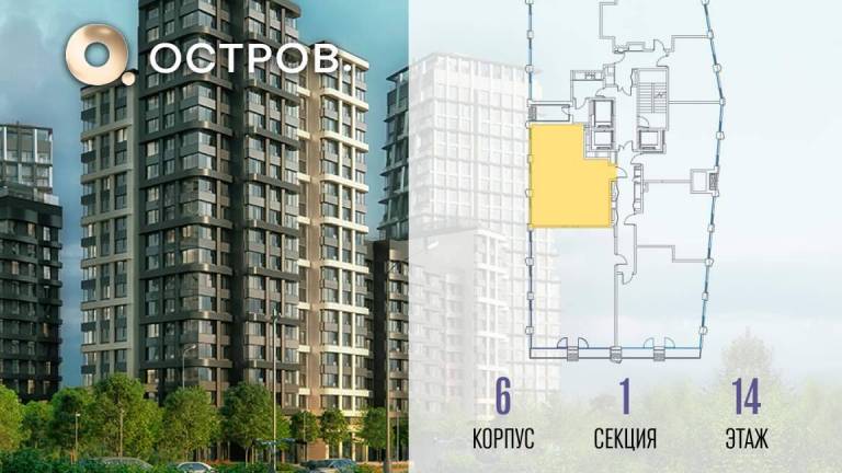 Продаётся 2-комн. квартира от застройщика: общая площадь 65.90 м, жилая 31.70 м, кухня 20.50 м, 14-й этаж, жилой квартал «Остров 14», корпус 6 (секция 1) .