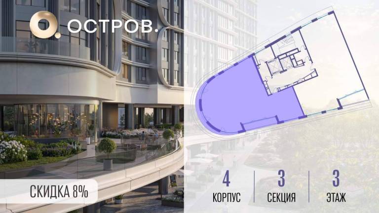 Продаётся квартира от застройщика: общая площадь 177.00 м, жилая 53.80 м, кухня 60.50 м, 8-й этаж, жилой квартал «Остров 7», корпус 3 (секция 1) . Срок сдачи...