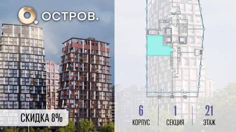 Фильтры2Продаётся 1-комн. квартира от застройщика: общая площадь 44.10 м, жилая 14.20 м, кухня 21.10 м, 21-й этаж, жилой квартал «Остров 14», корпус 6 (секция 1) .