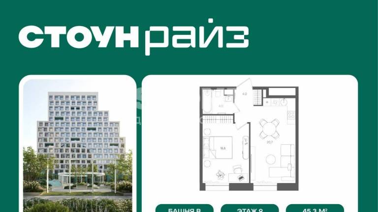 Старт продаж квартир в ЖК бизнес+ класса от девелопера STONE В продаже функциональная и светлая односпальная квартира с кухней-гостиной, одной спальней и...