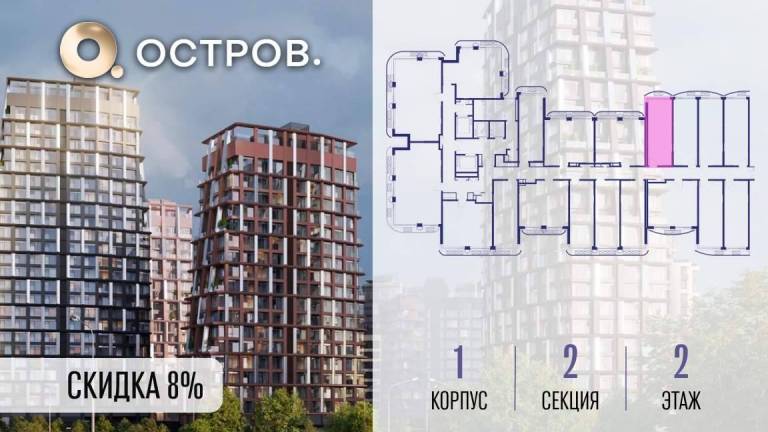 Фильтры2Продаётся квартира от застройщика: общая площадь 28.40 м, жилая 14.40 м, кухня 5.00 м, 2-й этаж, жилой квартал «Остров 14», корпус 1 (секция 2) . Срок сдачи: 2...