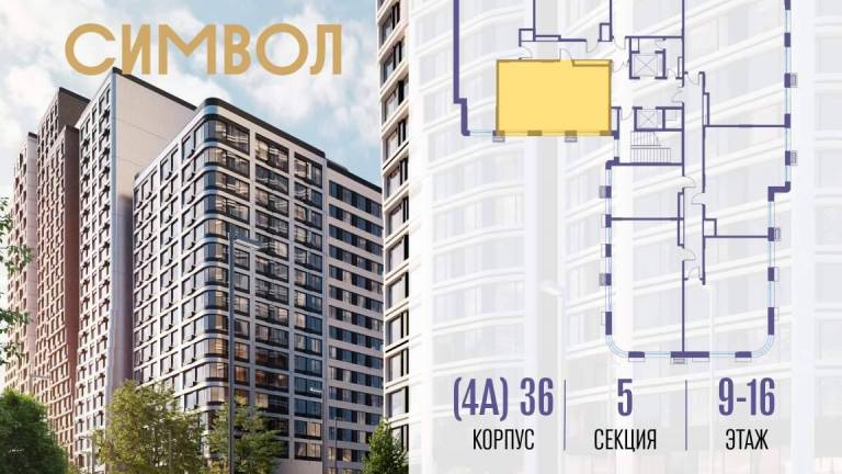 Продается 1-комнатная квартира от застройщика: общая площадь 45.70 м, жилая 16.00 м, кухня 19.90 м, 23-й этаж, жилой квартал «Гордость», корпус 36 (секция 3) .