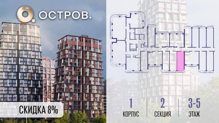 Продаётся квартира от застройщика: общая площадь 28.00 м, жилая 15.40 м, кухня 5.00 м, 4-й этаж, жилой квартал «Остров 14», корпус 1 (секция 1) . Срок сдачи: 2...