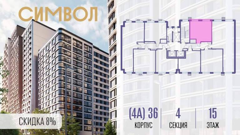 Продается 1-комнатная квартира от застройщика: общая площадь 36.40 м, жилая 14.00 м, кухня 13.40 м, 8-й этаж, жилой квартал «Гордость», корпус 36 (секция 4) .