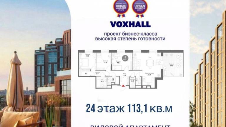 Арт. 127755205 УНИКАЛЬНАЯ СВЕТЛАЯ и ВИДОВАЯ КВАРТИРА с ПОТРЯСАЮЩИМИ ВИДАМИ НА ПАРК В ЖК БИЗНЕС-КЛАССА VOXHALL (Корпус 3). Срок сдачи – 1 квартал 2026 года.