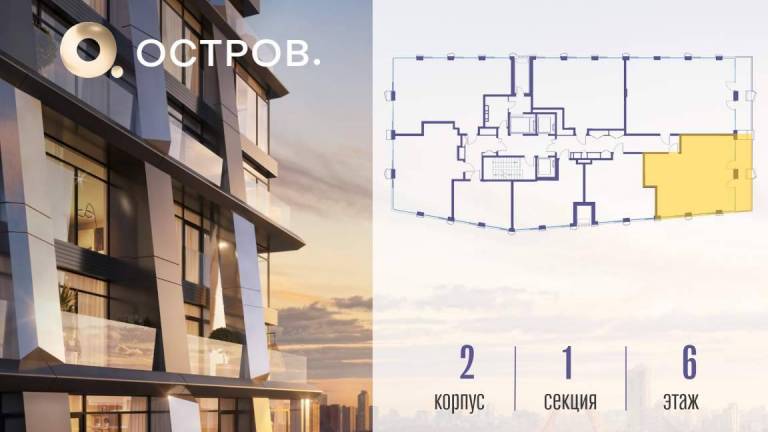 Продаётся 1-комн. квартира от застройщика: общая площадь 47.40 м, жилая 14.40 м, кухня 21.60 м, 10-й этаж, жилой квартал «Остров 12», корпус 1 (секция 1) .