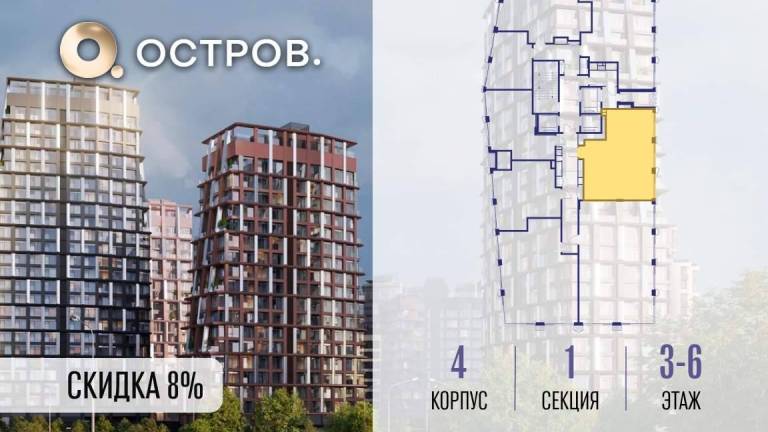 Продаётся 4-комн. квартира от застройщика: общая площадь 113.40 м, жилая 57.20 м, кухня 23.70 м, 8-й этаж, жилой квартал «Остров 12», корпус 3 (секция 1) .