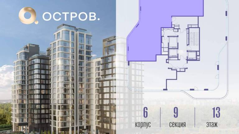 Продаётся 4-комн. квартира от застройщика: общая площадь 151.30 м, жилая 58.10 м, кухня 40.90 м, 9-й этаж, жилой квартал «Остров 12», корпус 6 (секция 1) .