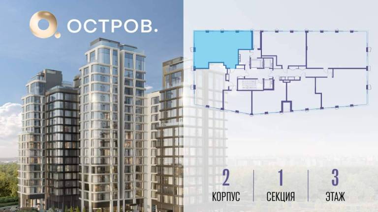 Продаётся 3-комн. квартира от застройщика: общая площадь 119.30 м, жилая 54.20 м, кухня 31.10 м, 18-й этаж, жилой квартал «Остров 12», корпус 3 (секция 1) .