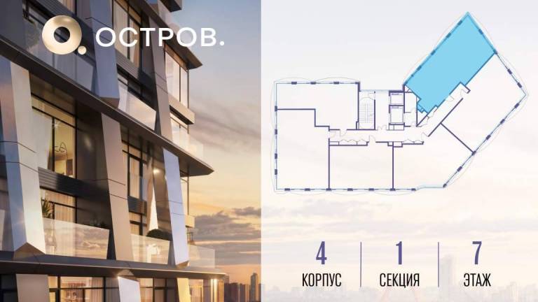 Продаётся 4-комн. квартира от застройщика: общая площадь 192.40 м, жилая 55.00 м, кухня 65.10 м, 18-й этаж, жилой квартал «Остров 7», корпус 3 (секция 2) .