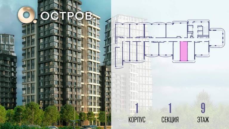 Продаётся квартира от застройщика: общая площадь 28.00 м, жилая 14.40 м, кухня 5.00 м, 9-й этаж, жилой квартал «Остров 14», корпус 1 (секция 2) . Срок сдачи: 2...