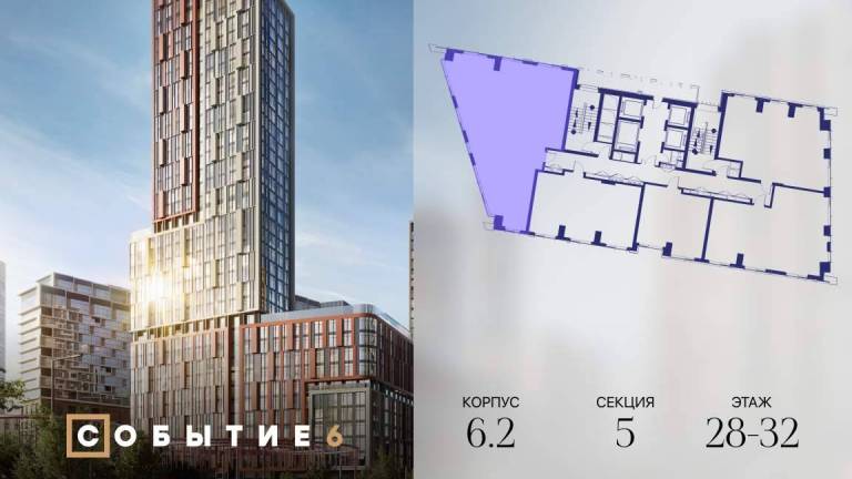 Фильтры2Продаётся 4-комнатная квартира от застройщика: общая площадь 130.80 м, жилая 59.90 м, кухня 28.10 м, 32-й этаж, жилой квартал «Событие-6», корпус 2 (секция 5...