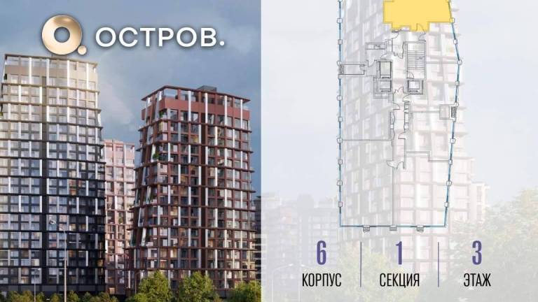 Продаётся 4-комн. квартира от застройщика: общая площадь 114.20 м, жилая 55.90 м, кухня 23.70 м, 2-й этаж, жилой квартал «Остров 14», корпус 6 (секция 1) .