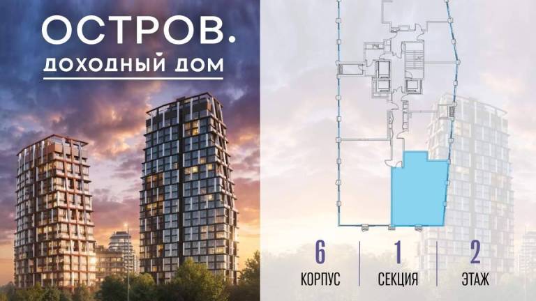 Продаётся 2-комн. квартира от застройщика: общая площадь 63.10 м, жилая 27.50 м, кухня 22.40 м, 10-й этаж, жилой квартал «Остров 14», корпус 1 (секция 2) .