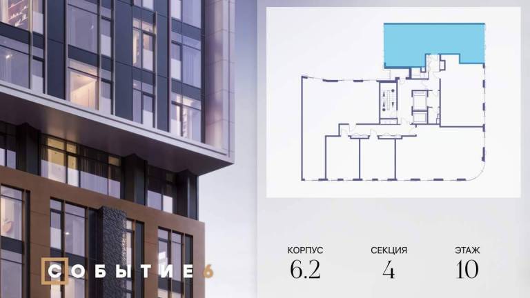 Продаётся 2-комнатная квартира от застройщика: общая площадь 61.80 м, жилая 32.90 м, кухня 17.80 м, 30-й этаж, жилой квартал «Событие-6», корпус 2 (секция 5...